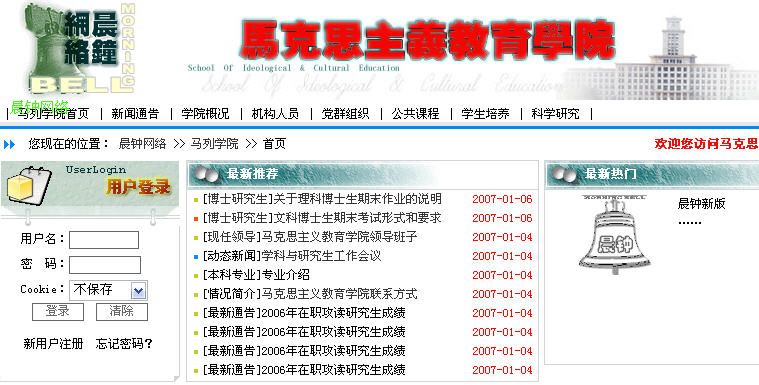 晨钟网站马克思主义教育学院已经更新,请各位从办公室汝国梁老师处获取账号和密码。