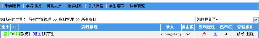 五、更新个人介绍,在右侧的上面,点击选择“马列学院管理”——“资料管理”,
