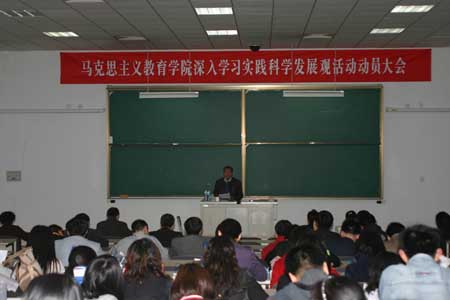 平章起书记最后强调,开展深入学习实践科学发展观活动对我们马克思主义教育学院的科学发展具有独特的意义,它是政治任务也是我们的本职工作,意义深远、责任重大。全院全体党员和广大干部群众,一定要按照中央、教育部和学校的决策部署,紧密结合学院工作实际,以高度负责的态度,以改革创新的精神,以求真务实的作风,积极投入到学习实践活动中来,为开创具有南开特色的马克思主义理论教育和大学生政治教育的新局面而努力工作。