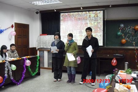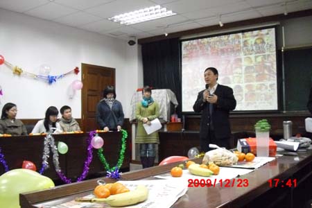 12月23日,学院多功能厅内欢歌笑语,热闹非凡,我院本科生在此举行一年一度的新年联欢晚会。院长赵铁锁、副书记纪亚光、副院长陈平应邀出席学院2010年元旦新年联欢会。学院思想政治教育专业2008、2009级班导师孟锐峰、盛林,团委书记马亚男也参加到联欢活动中。赵铁锁院长在新年贺辞中勉励青年学生珍惜宝贵学习时光,虚心向学,勇于实践,把自己培养成有信仰、有学养、有教养的高素质人才。在联欢会温馨热烈的氛围中,陈平副院长即兴高歌一曲,悠扬的歌声赢得学生的阵阵喝彩和掌声。联欢会上,2007、2008、2009级学生自编自演了多个精彩节目,其中既有反映大学生活的轻松音乐剧,也有传递美好祝愿、抒发人间至爱的手语节目,更有用方言串联起来的说唱节目……大家在展示才艺的同时,也收获了来自师长和同窗的深深祝福。