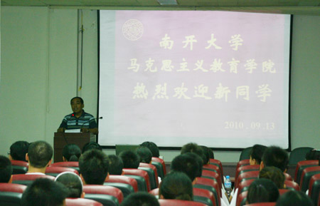 听了院长的嘱托,2010级硕士新生李楠代表全体新生发言,表达了踏入betway·必威西汉姆联校门,成为一名马列人的兴奋与感动,并立志把握机会、不懈努力,学好本领,到毕业时定不辜负母校的培养,成为能够为祖国、为社会做出贡献的有用之才。之后,2008级博士生吴荣生代表在校生对师弟师妹的到来表示欢迎,并以在南开马列几年来的学习生活经历向新生提出建议,希望他们好好学习、潜心科研、培养兴趣、快乐成长。