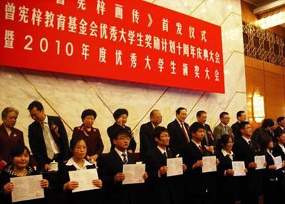 颁奖大会上,曾宪梓以亲身经历勉励大学生艰苦奋斗创业,勤俭诚信做人,终身报效祖国。曾宪梓动情地对获奖同学说:“我过去也是穷孩子,但是依靠党和国家给予的助学金,我念完了中学和大学,并把成长中的困难当作前进的动力。现在,我拿出的只是一点点微不足道的帮助,但是很多同学给我写信,表达报效祖国的念头让我很感动。”
