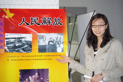 2009级思政专业学生党员曹猛心情激动:“从小听着中国共产党的故事长大,对党充满了崇敬和敬仰。作为一名学生党员,进入大学以来,通过深入系统的理论学习,在对党的认识和感情日益深厚的同时,我一直希望能够找到一个为党做点事情的机会。以往我们都是在课堂上聆听教授学者们讲授中国共产党的历史,这次有机会参与建党九十周年主题图片展的设计准备工作,为我们提供了一个自主学习和认识提高的好机会。在不断收集整理党史资料的同时,我一次次地为党艰苦卓绝的革命和奋斗精神所感动。90年来,32000多个日夜,承载了决定党和国家前途命运的一系列重要事件,中国共产党始终表现出英勇无畏的优秀品质和不畏艰险的坚强意志,带领国家和人民走向繁荣富强。重温党史,点亮了青年大学生的人生理想。我坚信在中国共产党的坚强领导下,中华民族必将走向伟大复兴!”