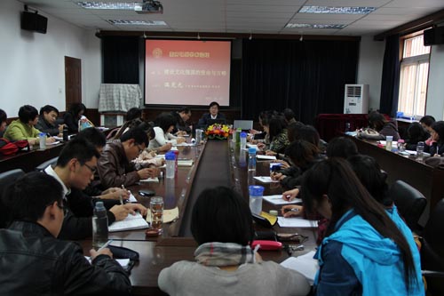 (通讯员:刘佳佳 )2011年11月7日下午,广东省社会科学院副院长、研究员温宪元教授做客“南开马列学术论坛”,为师生带来了一场主题为“建设文化强国的使命与方略”的精彩讲座。本院部分教师、全体硕士博士研究生参加了此次活动。讲座前,副院长纪亚光教授详细介绍了温宪元教授的研究领域、主要学术成果等,并代表全体师生对其到来表示热烈欢迎。