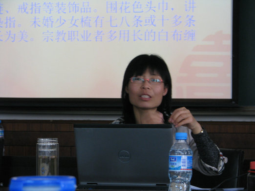 随后,张红梅老师围绕“西域风情,美丽喀什”这一主题,从“喀什概况”,“喀什历史文化”,“喀什民俗风情”等三个方面分析了喀什优越的地理位置、丰富的自然资源以及作为祖国边防的重要战略地位。她从历史和人文两个的角度,梳理了喀什地区悠久丰厚的文化底蕴和新疆多彩的民俗风情。看着一张张精美的图片,新疆地区鲜艳的民族服饰、独特的饮食文化以及种类繁多的新鲜瓜果……勾起了许多同学对新疆的无限向往。