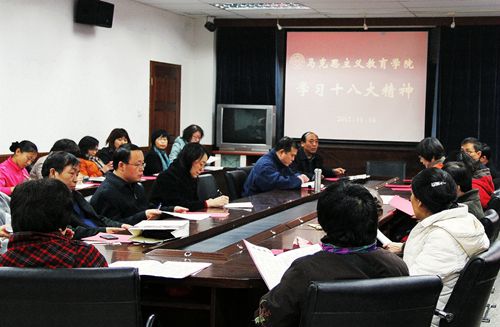 1116日,马克思主义教育学院全院教师在范孙楼218集中学习了胡锦涛同志在中国共产党第十八次全国代表大会上作的报告。