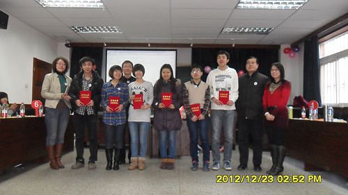随后由学院党委副书记、副院长马亚男宣读本年度研究生在各项活动中表现积极,并做出突出贡献的获奖同学名单,学院领导和老师为张婷婷、刘琦、陈鸿雁、康丹丹、张晨、闫文韬等六名同学颁发了荣誉证书并合影留念。