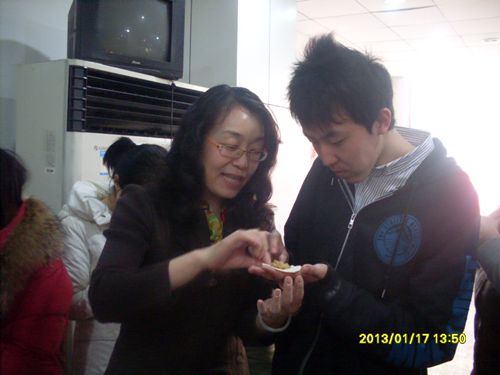 早上10点半,学生干部先到场地做布置工作,11点同学们齐聚餐厅正式拉开包饺子的序幕。同学们都兴冲冲地忙活起来,有的同学专职擀皮,有的同学负责包饺子,大家分工合作,效率极高。来自全国各地的同学们也都包出了带有家乡特色的饺子。学院领导和老师们为大家带来了元宵、饮料和佳肴,他们也都动起手来,时而擀皮时而包,并教会大家包饺子的技巧,和大家唠家常,谈生活,论学习,拉近了和同学们之间的距离。在其乐融融的气氛中,不知不觉包饺子工作圆满竣工,一批批各具特色的饺子被送进厨房,不一会香喷喷的美味佳肴就摆到了我们面前。大家边吃边聊,欢声笑语响彻在充满人情味的西园餐厅中。大家觉得今天的饺子特别美味,因为这是师生共同的劳动成果,它渗透着浓浓的师生情和同学间纯真的友情,有着“人情味”的饺子当之无愧为最美的饺子。
