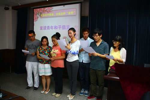 中日学子共同宣读了“青年和平倡言”,大家表示,作为21世纪的青年人,要携手出发,面向未来,用真诚的对话和沟通,缔造中日两国稳固的信任和友谊,尽心提倡中日两国的文化和学术交流,共创一个和平友好的未来。