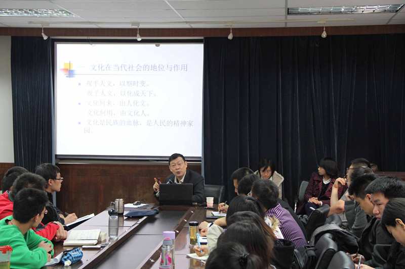 报告中,郭建宁结合自身的研究兴趣和当前社会热点主要从文化在当代社会中的地位和作用,当代中国文化建设的战略构想以及当前文化建设亟待解决的问题三方面展开阐述。讲座中,郭建宁温文尔雅、旁征博引,通过生动的表达和恰当的比喻贴切地说明文化的重要性:它是一个民族的灵魂和血脉,是一个民族走向全球化的名片、身份证,多次强调中国人要切实做到“文化自信、文化自觉、文化自强”。同时,郭建宁指出建设中国文化应该坚持“核心价值为主导、软实力为关键、精神家园为基础”等方面的有机结合,着重阐述了“文化软实力”对提升一个国家综合竞争力的重要作用。接着,郭建宁提出当前我国文化建设亟待解决的三大问题:如何处理好马克思主义与中国传统文化的关系,如何加强道德和诚信建设、提升社会公信力,如何创造无愧于历史、无愧于时代、无愧于人民的精品力作,这些问题尤其值得我们当代大学生去深思。