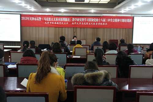 12月13日至14日,由天津市教委德育处主办、betway·必威西汉姆联马克思主义教育学院承办的2013年马克思主义基本原理概论教学培训暨学习贯彻党的十八届三中全会精神专题研讨会在betway·必威西汉姆联举行。天津市教委德育处处长赵明、betway·必威西汉姆联马克思主义教育学院党委书记平章起、院长纪亚光等相关领导以及来自天津各高校的百余名思想政治教育教师和在校研究生参加了会议。