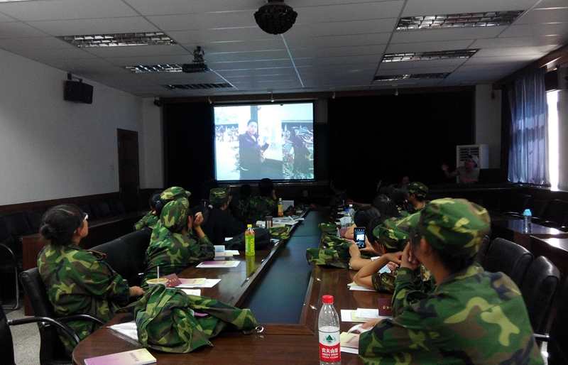 随后,新生们就军训生活谈了自己的感受。新生王惠谈到,“军训是苦中有乐的,尤其是舍友给了我很大帮助。” 新生寇静谈到,“军训让自己学会了‘坚持’的精神,每当自己感觉不行时都是咬咬牙挺过来的,相信这种精神能帮助自己克服大学中的很多困难。” 新生吴欣瑶谈到,“军训增强了自己的时间观念,懂得了纪律的重要性,学会了担当。”