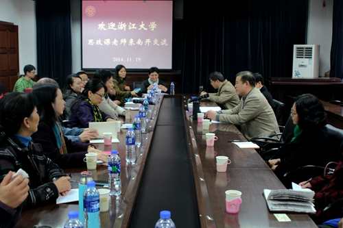 11月19日,浙江大学思想政治理论教学科研部吕有志主任一行12人来我院交流访问。学院院长纪亚光出席座谈会,副院长寇清杰、陈平,教师代表姬丽萍、徐曼、林绪武、肖光文、孟锐峰参加座谈。
