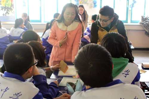 在嘹亮激昂的《光荣啊,中国共青团》歌声中,主题团日活动正式拉开了序幕。随后,全体成员乘地铁前往新华中学,随行的还有团委组织部考评中心的两位考察员。团支部21名成员分成两个小组,分别进入新华中学国际部高一年级一班、二班开展活动。