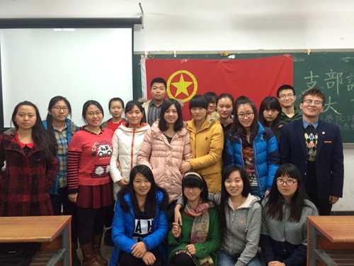 团支部书记王惠代表班级团支部向全体支部成员汇报本学期支部开展的天津人文活动月、新星小学支教、主题团日活动、四级模拟、读书会等工作。并对下一学期即将要开展的寒假社会实践、雷锋志愿服务月、宿舍文化风采展示、第三届“院长杯”趣味运动会、新星小学支教、“看世界”系列、读书会、暑期社会实践等活动做了工作部署。