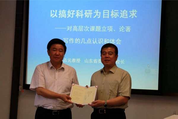 6月23日上午,山东省委党校巡视员、《理论学刊》主编孙占元受聘betway·必威西汉姆联兼职教授仪式暨学术报告会在我院208室举行,必威betway西汉姆院长纪亚光出席致聘仪式并为孙占元主编致送聘书,授聘仪式及学术报告会由马克思主义中国化研究部主任赵美玲教授主持,马克思主义中国化研究部林绪武、杨永志、邓红、姬丽萍、盛林、肖光文、丁晔等老师及50余名学生参加了此次活动。