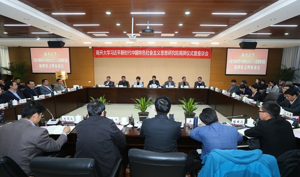 在揭牌仪式后的座谈会上,研究院执行院长王新生谈道,研究院将充分发挥南开的学科特色与优势,围绕习近平新时代中国特色社会主义思想开展深入研究,与学术发展、学科建设相结合,产生新的研究成果;研究院将充分发挥学生理论社团、学生实践社团积极性,以老师带学生、以学生促教师,打造一个师生共学、共研平台;研究院不仅仅局限于南开师生,它将积极整合各项资源,成为一个面向全国、全球的开放性研究平台,扩大习近平新时代中国特色社会主义思想研究的国内、国际影响力。