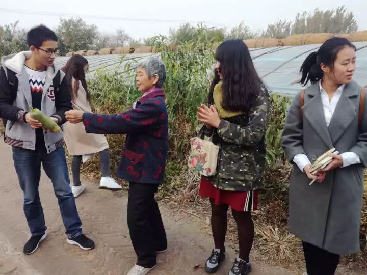 实践中,师生就两个扶贫村的发展现状进行了深入的调研。学生姚征谈到,调研中看到村里正在进行集中供暖改造,家家户户将在11月中旬通上暖气,告别传统的采暖模式,减少了污染,向美丽乡村又迈了一大步。唐启俊在田间与一位奶奶交谈中了解到,大杜庄村依靠土壤和气候的优势,大面积发展绿色沙窝萝卜种植,人均收入有了明显提升。调研中,师生们还在村支书的带领下走进了蔬菜种植大棚,并于农民进行了深入交谈。