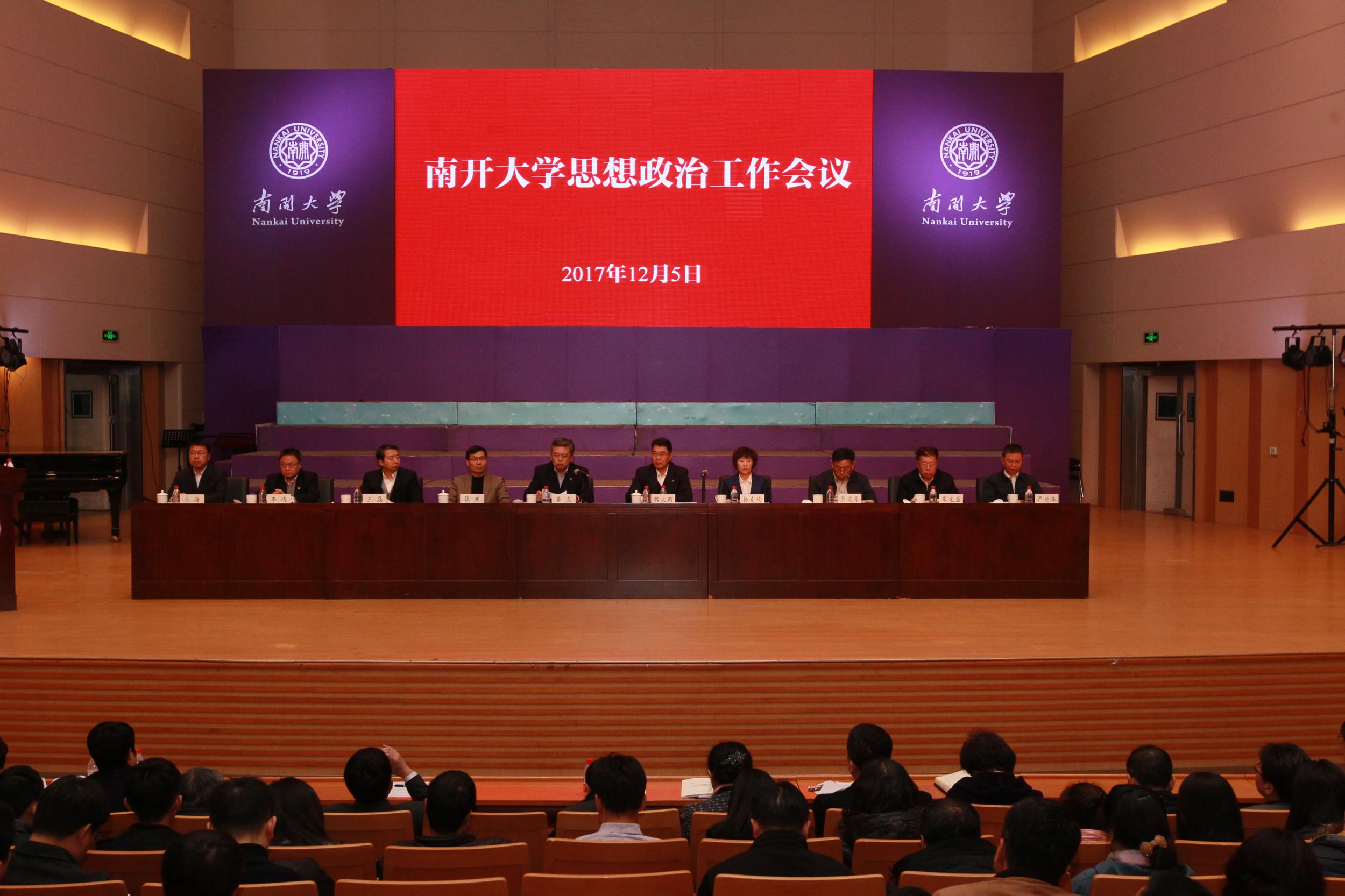 2017年12月,在全国高校思政会召开一周年之际,betway·必威西汉姆联召开思想政治工作会议,旨在深入学习贯彻党的十九大精神,回顾一年来betway·必威西汉姆联贯彻落实全国高校思想政治工作会议精神的主要工作,不忘初心、牢记使命、继续前进,努力开创新时代betway·必威西汉姆联思想政治工作新局面,为建设南开品格、中国特色、世界一流大学提供坚强的思想政治保证。
