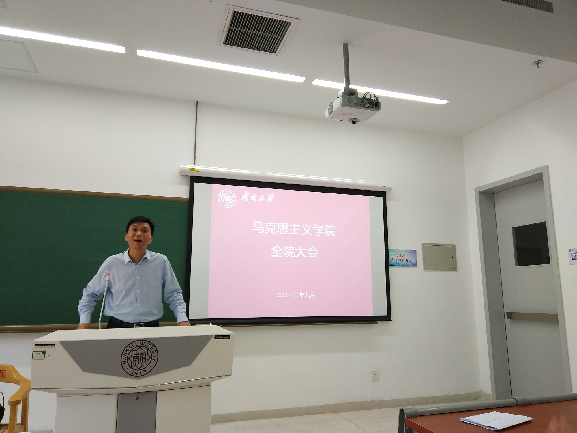 院长王新生对一年来马院工作进行了整体的回顾和总结。他表示,在教育部、天津市和学校的大力支持下,学院的发展正处于历史上最好的时期。在全体老师的共同努力下,学院在各个工作领域里都取得了辉煌的成绩。本科招生工作实现新突破,学生人数增长的同时质量也有所提升;科研立项情况实现井喷式增长;在党建工作方面一批集体和个人获得天津市和学校的表彰。他强调,学院整体发展的势头向上,成绩喜人,这离不开每一位马院人的辛勤付出。希望全体老师在大好形势下继续保持干劲,按照更高标准,推动学院教学科研再上水平。在本学期工作部署中,王新生指出,要重视优势学科的建设,打造真正具有南开马院特色的学科;要关注硕士生与博士生的培养,进一步推进硕博培养方案深化的工作,提高研究生培养质量;要抓好本科新生的专业教育,为学院研究生提供优质后备人才。