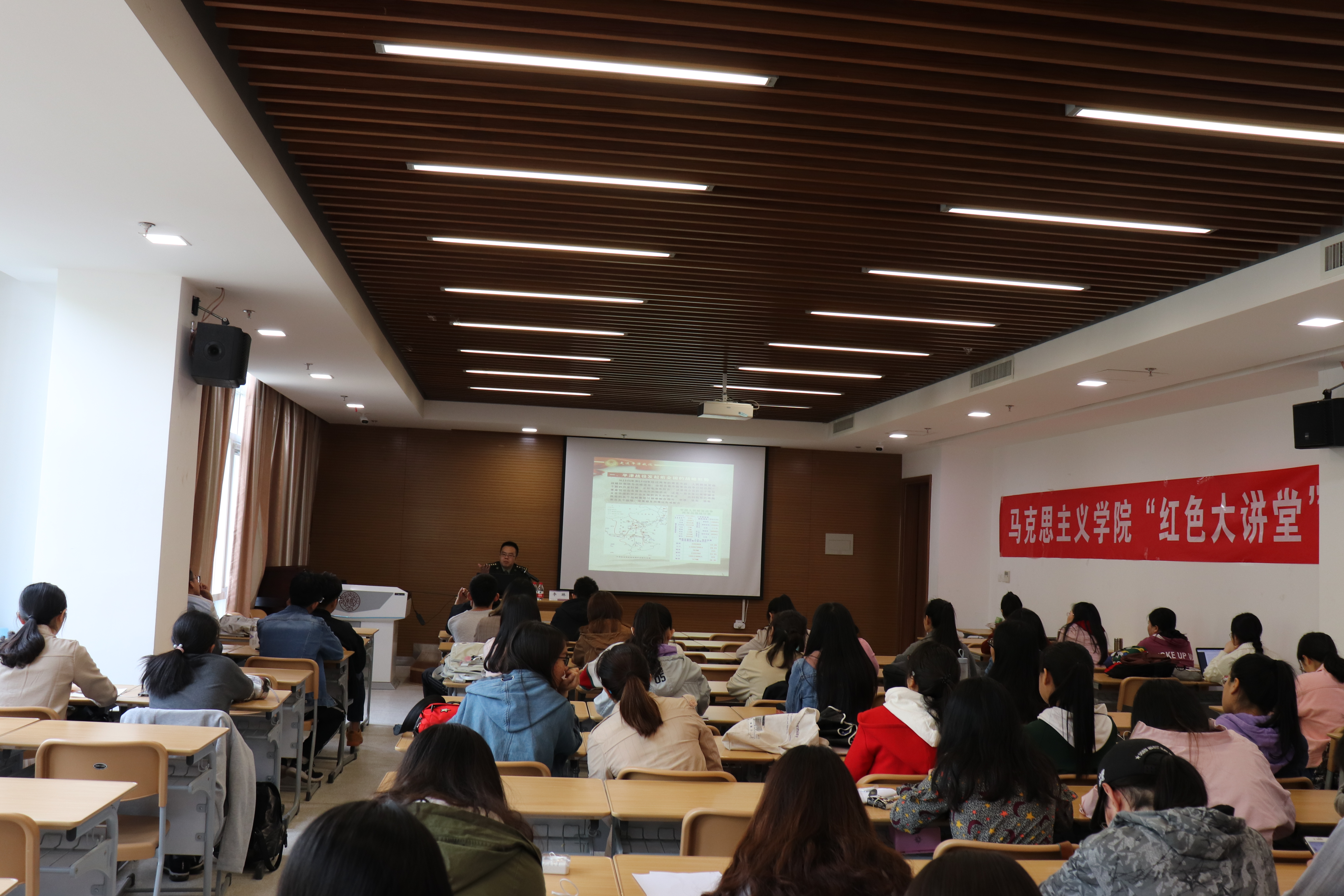 李琳还讲述了21岁的杨成武指挥“飞夺泸定桥”,23岁的刘伯承切除右眼坚持不打麻醉剂,25岁的邓小平领导百色起义……通过讲述上个世纪的90后、00后们在中华民族危难时出生,白手起家,创建新中国的故事。李琳勉励同学们,作为21世纪的90后、00后,同样应该为实现中华民族伟大复兴而奋斗,以青春之我、时代之我,书写无愧于时代、无愧于民族的壮丽篇章!