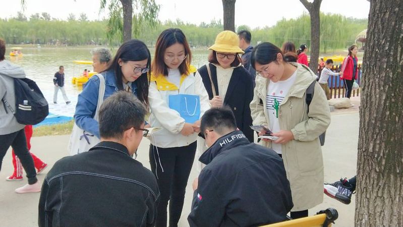 10月12日下午,必威betway西汉姆星火班全体同学在班导师孙海东的带领下,乘车来到了杨柳青庄园。经过前期的精心策划与准备,本次活动班级同学分为五组,每组同学准备了装有国史、南开校史相关的问题箱,邀请当地市民随机抽取若干题目进行作答,班级同学结合作答情况及题目内容向其开展有针对性的校史宣讲,并依据答对数量赠送南开百年校庆主题的纪念品。
