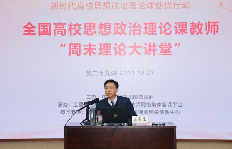 12月27日下午,由教育部主办,全国高校思想政治理论课教师网络集体备课平台承办,北京高校思想政治理论课高精尖创新中心提供全程技术支持的“周末理论大讲堂”第二十九讲在betway·必威西汉姆联举办。本场讲座的主讲嘉宾是betway·必威西汉姆联副校长王新生教授,授课题目是:《决胜全面建成小康社会 夺取新时代中国特色社会主义伟大胜利》(党的十九大报告)导读。领学环节的主讲嘉宾是教育部高校思想政治理论课教学指导委员会委员、天津工业大学张健华教授。