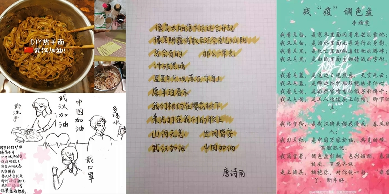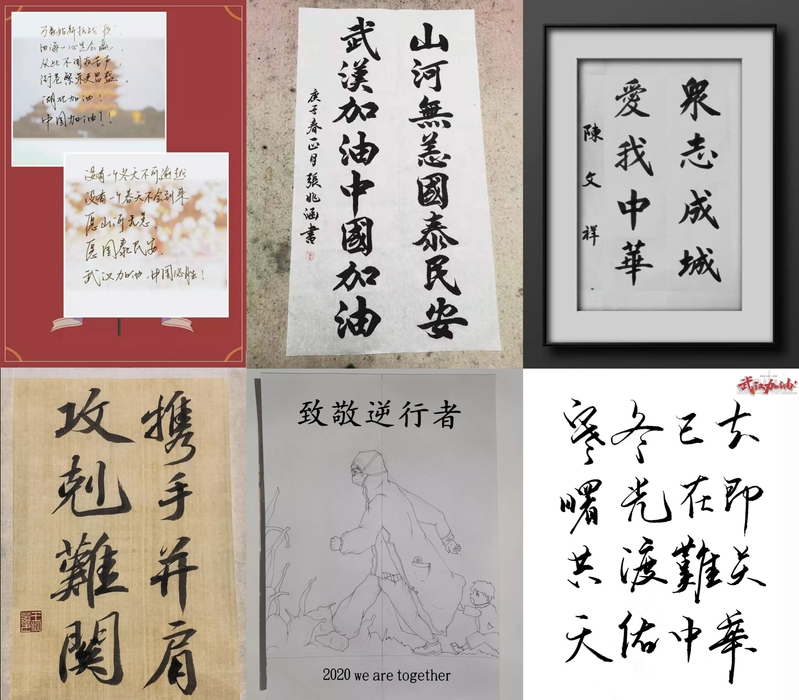 在党组织、政府及学校的统筹安排下,马院学生高度关注疫情最新情况,用自己的实际行动,帮助伟大祖国攻坚克难:通过互联网向武汉捐赠医疗物资,发表疫情随感,讲述身边人的故事;通过书法、绘画、诗词等形式,为“逆行者”们加油,共筑人心城墙。