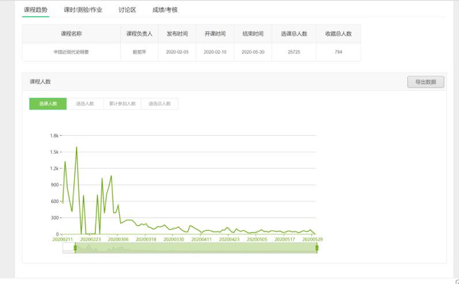 betway·必威西汉姆联《中国近现代史纲要》慕课,于2018年秋季首次开课,截至2020年春季已运行第四期。教学团队将纲要课程按照8个单元、48个知识条目进行专题讲授。为方便学习者自测、巩固学习成果,本课程多角度、全方位地采用随堂检测、单元测评、期末考试等相结合的方式。本课程还为学生开设了老师答疑区、课堂交流区、综合讨论区等,为教师与学习者的交流讨论提供平台。仅就本学期,已有25880人选课进行了自主学习,7681人完成了线上考试。课程内容受到广大学习者的一致好评。