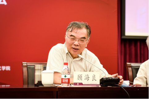 顾海良围绕马克思主义基本原理概论教材建设过程中面临的问题、以及如何解决进行了发言。他说,理论特征是认识理论体系的一个关键,我们要把马克思主义原理和马克思主义理论特征的内核、精髓在课程中更好地体现,结合时代内涵、时代意蕴、时代精髓,贯穿全书、全面系统地讲好马克思主义基本科学原理和科学精神这个问题,处理好历史、理论、现实三者的关系,深入了解马克思主义发展史,从历史过程中讲好原理的来龙去脉、讲好原理产生的时代背景、讲好理论要义及其时代影响,以便更好地理解当代马克思主义,更好地理解新时代中国特色社会主义思想,更好地引领广大青年学子用好马克思主义看家本领。