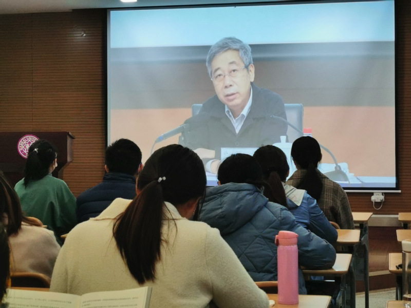 1113日上午,党支部于学院113会议室集中观看了由教育部党组书记、部长陈宝生主讲的“党的十九届五中全会精神”导学报告会。会上,陈宝生提纲挈领,对全会精神主题教学提出“十个讲清楚”、“十个深刻认识”的要求。支部成员一致认为,全会精神导学报告会对大家在思想政治教育专业的学习生活和实践工作具有启发性意义。