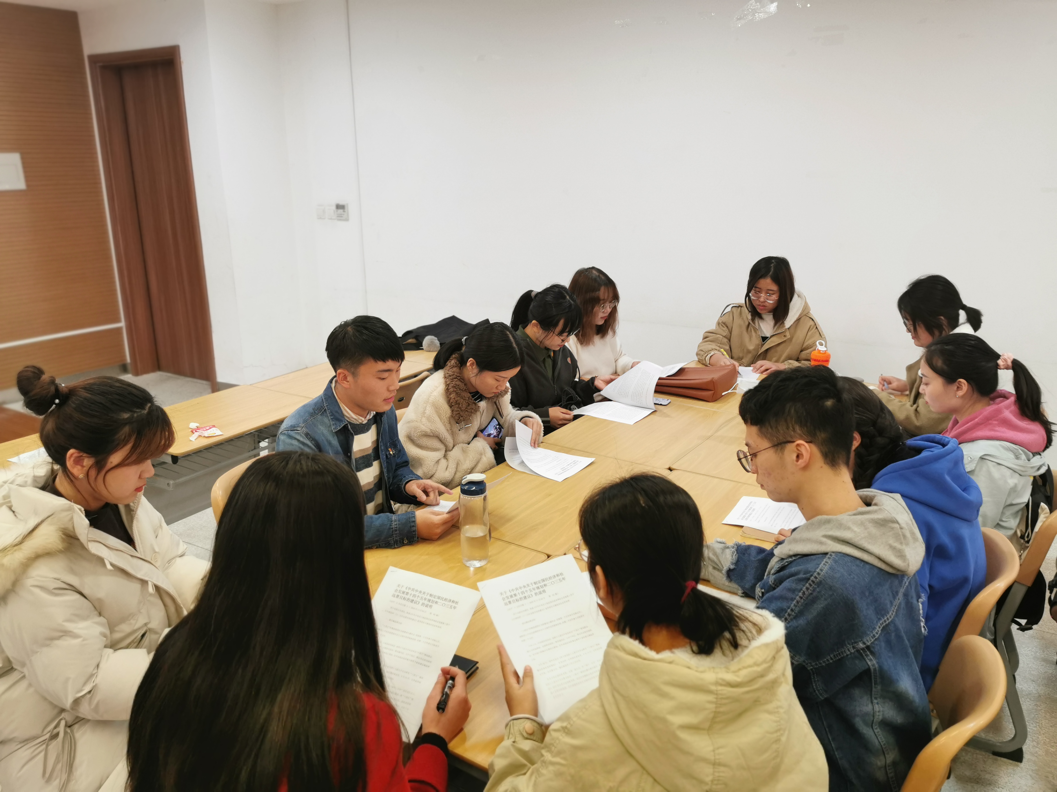 之后,党支部召开了主题研讨会,支部书记朱文豪带领大家认真学习了规划《建议》等相关文件,支部成员积极发表了自己的看法。支部书记朱文豪表示,规划《建议》稿起草过程是我国党内民主和社会主义民主的生动实践,无论是前期党内外的征求意见,对地方和基层的深入调研,还是听取社会各界意见建议,开展网上征求意见等,都是其生动体现。宣传委员兼纪检委员潘子檬、组织委员王秀文从思政专业学生党员的身份谈到,我们要扎实理论基础,肩负起新的时代使命,通过对马克思主义理论,尤其是习近平新时代中国特色社会主义思想的学习领会,树立坚定的共产主义理想信念。