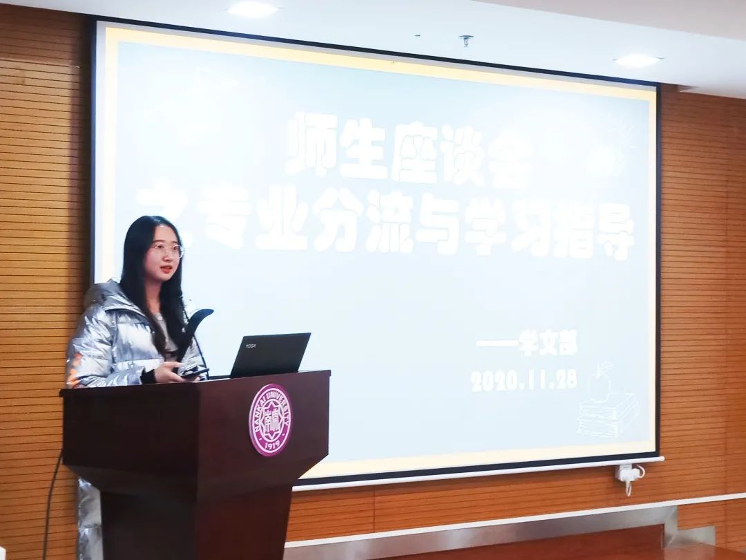 近日,必威betway西汉姆师生座谈会之专业分流与学习指导专题在学院113室举行,本次活动邀请到本科教学部主任余一凡老师、18级本科生王伯元、19级本科生董晓乐、19级本科生崔雪、19级本科生凌张可为同学们进行指导,19级本科生和部分20级本科生参加座谈会。