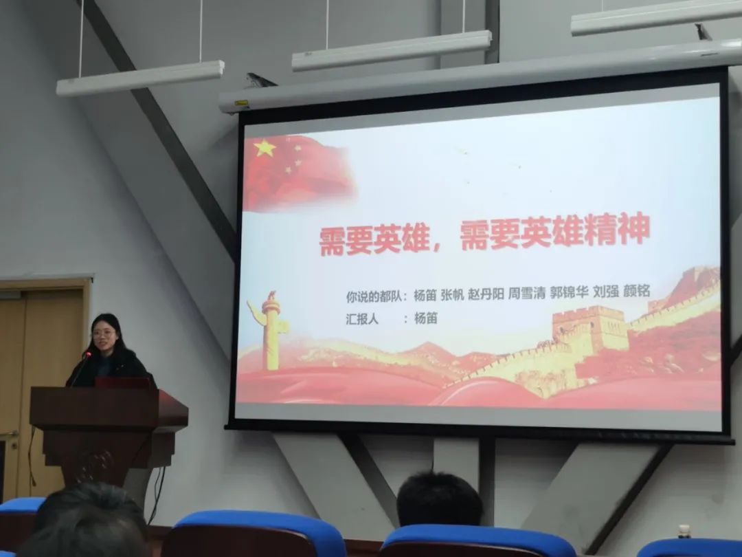 杨笛同学代表“你说的都队”小组,围绕“需要英雄 需要英雄精神”为主题,以中国人民志愿军烈士遗骸归国这一事例为切入,引出“英雄”主题。宣讲从“何为英雄”“为何崇尚英雄”“如何崇尚英雄”三方面展开,通过理论和现实两个维度,梳理英雄人物的光辉事迹与崇敬英雄的新时代价值,勉励广大青年学生铭记、致敬并力争成为出自平凡的非凡英雄。