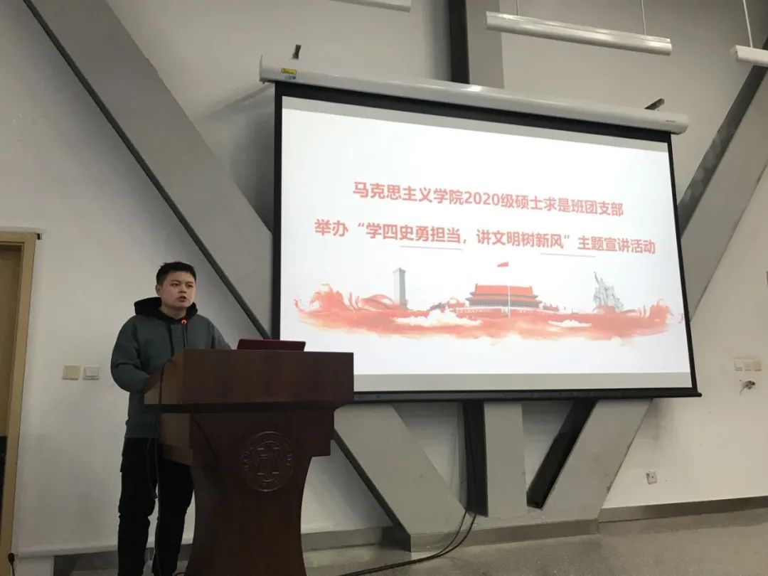 为扎实推进“四史”学习教育,12月3日必威betway西汉姆2020级硕士生求是班团支部以纪念一二九运动为契机,举办“学四史勇担当,讲文明树新风”主题宣讲活动。学院院党委副书记、副院长刘一博老师,团委书记陈永刚老师,2019级亮剑班团支部书记赵赟学长,学院团宣负责人孟津卉学姐为宣讲活动进行指导。