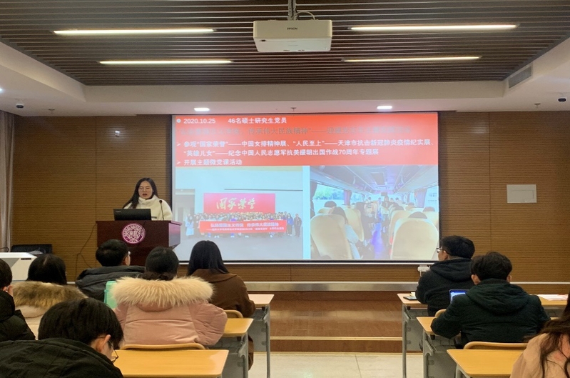会议伊始,学院党校培训部部长张玲、实践部部长杨冬至分别对培训班开展情况进行总结回顾,张玲指出:本期培训班以学习四史精神为总内容和总指向,并依托“红色大讲堂”,开展了8场主题讲座,1次“优秀党员面对面”分享交流会,1场“可爱的中国”话剧观看,1场《金刚川》主题观影,2次党员实践活动。杨冬至则从实践部工作角度表示此次培训为新生党员提供优质多样的学习和实践平台。