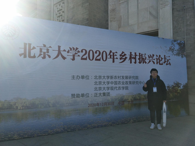 2020年12月30日,北京大学2020年乡村振兴论坛在北京友谊宾馆召开。本次论坛由北京大学新农村发展研究院、北京大学中国农业政策研究中心、北京大学现代农学院联合主办。论坛围绕“新形势下的农业农村转型与发展”这一主题,就相关前沿、重大和焦点问题展开深入讨论,设置如下4个分论坛:后脱贫时代的农村农业发展与转型、“双循环”下的粮食安全与农业发展、数字技术与农业农村转型、绿色发展与农业农村经济转型。来自清华大学、中国人民大学、中国农业大学、浙江大学等高校的农村农业研究专家与青年学者与会。我院2020级博士生向勇受邀参会。