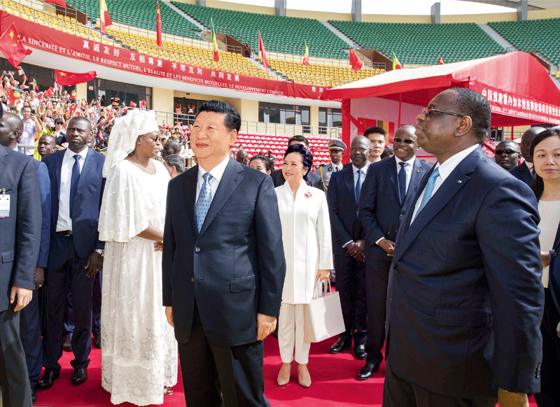 2018年7月22日,国家主席习近平在达喀尔同塞内加尔总统萨勒共同出席塞内加尔竞技摔跤场项目移交仪式。 新华社记者 王晔/摄