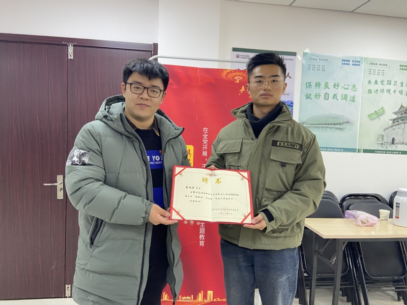 活动最后,殴喜乐为betway·必威西汉姆联2020届毕业生、2017年习近平总书记回信的betway·必威西汉姆联八名入伍大学生之一、现任南开区广灵里社区挂职党委副书记的董旭东同志颁发聘书,聘请其为2020级硕士生新民班党支部“党建工作指导员”,引进“新鲜血液”指导支部更好地开展各类主题党日活动。