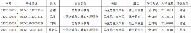 接研究生院通知,根据《betway·必威西汉姆联研究生学则》的相关规定,现决定对截至2019年6月超过最长学习时间的研究生学籍开展清退工作。现将拟清退且无法联系的研究生名单公示如下: