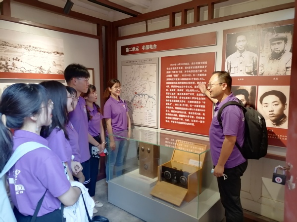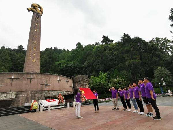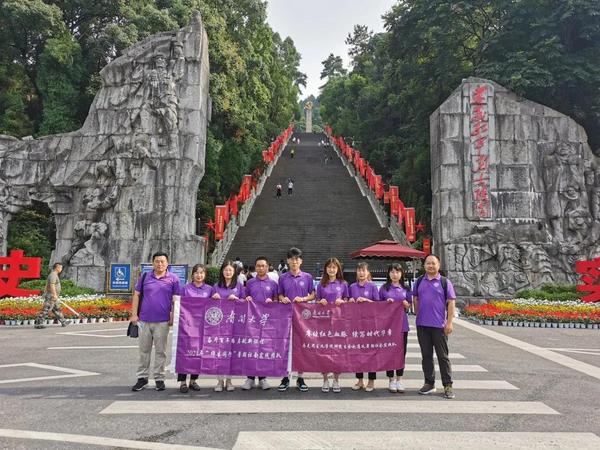 红军山烈士陵园是国务院首批公布的全国重点烈士纪念建筑物保护单位,2021年6月,被中宣部命名为“全国爱国主义教育示范基地”。实践队员来到这里,深入学习了红三军团参谋长邓萍将军生动的革命事迹和红军卫生员龙思泉因救助群众牺牲的动人故事,并向红军先辈致敬缅怀。红军烈士纪念碑上,邓小平同志题写的“红军烈士永垂不朽”八个大字熠熠生辉,实践队员肃立在纪念碑前,向为革命事业牺牲的先烈深表哀思。在陈永刚老师的带领下,实践队员一同重温入党时的铮铮誓言,表达继承革命先辈遗志,走好新时代长征路的信心决心。