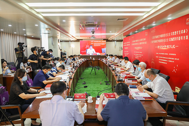 参与《习近平新时代中国特色社会主义思想学生读本》《习近平新时代中国特色社会主义思想教学指导方案》编写的思政专家代表,天津大学有关负责同志,天津市其他各高校党委主要负责同志、各区教育局党委主要负责同志,以及大中小学思政课教师代表400余人通过线上或线下方式共同参会。