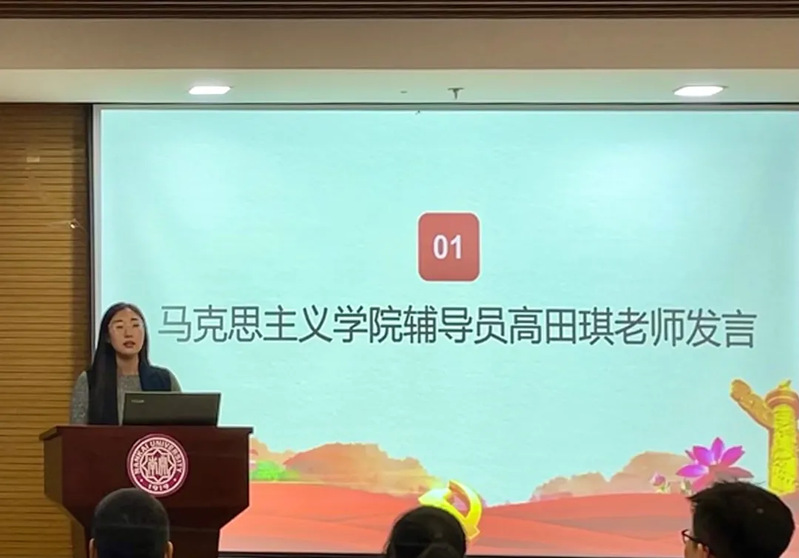 学院团委副书记、新声党支部书记高田琪为本次活动进行开场发言。她带领同学们回顾了习近平总书记在中央民族工作会议上的重要讲话精神,并鼓励同学们要将会议精神落实在自身理想树立、学习生活、成才报国的具体方面。近年来,学院本科生人数翻倍增长,少数民族学生人数和比重也逐年增长,同学们更要像石榴籽一样紧紧的团结在一起,为班级建设、学院建设、家乡建设贡献青年力量。她鼓励少数民族同学们要牢记自身使命,勇担时代重任,积极学习,成为民族发展的骨干人才,为少数民族地区发展贡献南开力量。