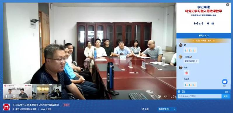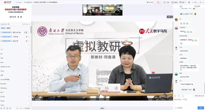 在主题发言之后,虚拟教研室的老师们进行了热烈的提问和研讨。老师们纷纷表示,本次虚拟教研室集体备课会,对于将党史学习融入马克思主义基本原理课,对于推进新时代思政课改革创新,深化课程重点难点问题的思考与理解,都具有重要意义。