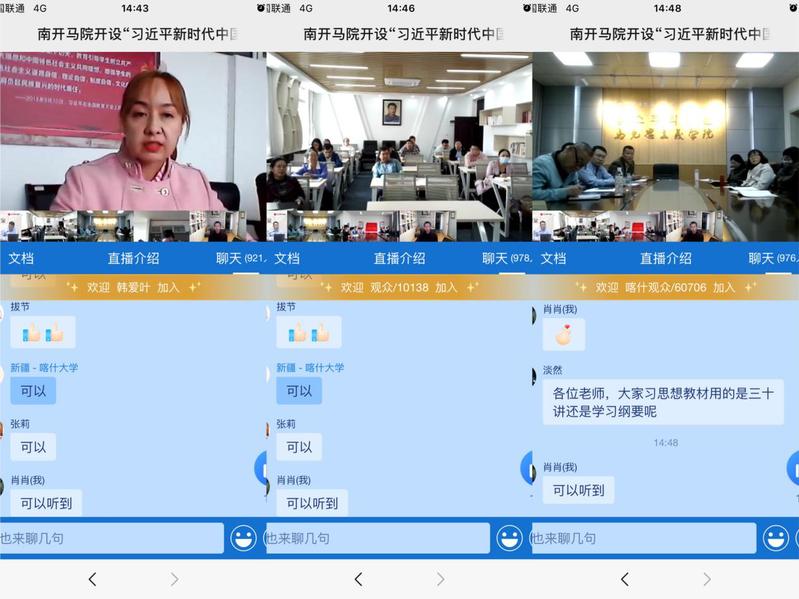 交流环节,天津医科大学必威betway西汉姆黄知伟老师对授课过程中的经验进行了分享;喀什大学必威betway西汉姆概论纲要教研室主任姑扎丽努尔·托乎提就世界百年未有之大变局的描述变化进行提问;广西大学必威betway西汉姆老师就“如何讲好习近平关于教育的重要论述”提问;延边大学老师就“概论课与习近平新时代中国特色社会主义思想概论课的内容上如何进行科学界划”提问。主讲专家就上述问题与老师们进行了线上互动。在留言互动区里,部分老师就“怎么处理好学理性和趣味性的关系”、“教学效果和抬头率”等问题与专家进行了交流。