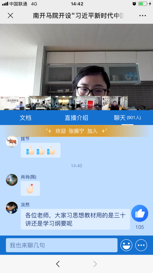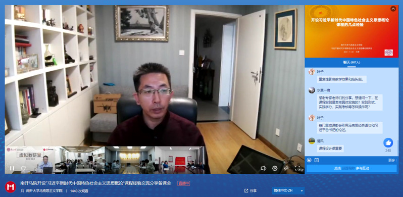 本次活动,围绕着如何顺利开设《习近平新时代中国特色社会主义思想概论》课程,进行经验介绍和互动。集体备课会由必威betway西汉姆副院长王生升教授主持,蓝海副教授主讲,采用线上线下相结合的形式进行,1400余人次观看直播并参与互动。