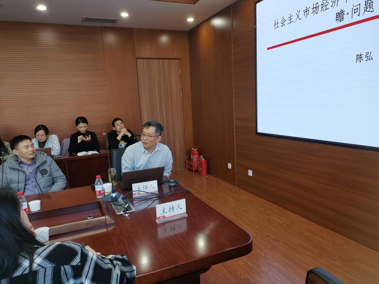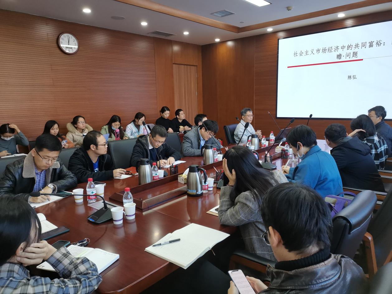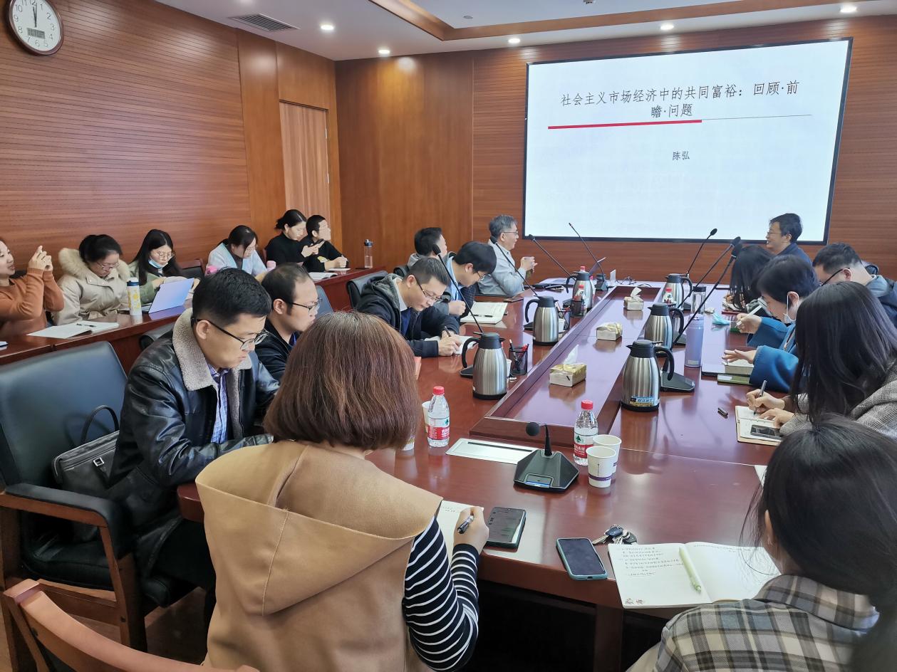 11月11日,必威betway西汉姆“双周学术沙龙”第四期在321教室举行,我院陈弘教授作了题为“社会主义市场经济中的共同富裕:回顾、前瞻与问题”的专题讲座。本次沙龙由必威betway西汉姆副院长孙寿涛教授主持。