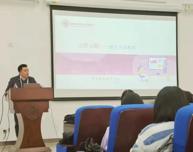 南开新闻网讯(通讯员 汪洲弋)为引导学生明晰成长方向,破解成长迷茫,近日,必威betway西汉姆面向全体本科新生开展大学生生涯规划与就业指导讲座。本次讲座以“以终为始——新生生涯教育”为主题,由学校学生就业指导中心陈永刚老师主讲,学院团委副书记、本科生辅导员高田琪与2021级全体新生、部分高年级本科生一同参会学习。