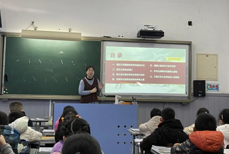 本次宣讲通过播放《飞夺泸定桥》等相关视频,以现场提问的方式进行互动交流。为了方便小学生的理解,周欢采取了讲故事的方式,如《七根火柴》的红军过草地的故事,鲜活生动地描述了长征的艰难。最后她引导学生们要传递好“精神之火”,以“不怕远征难”的决心和气魄,踏实学习,增长本领,走好新时代的“长征路”,创造新时代“长征奇迹”。