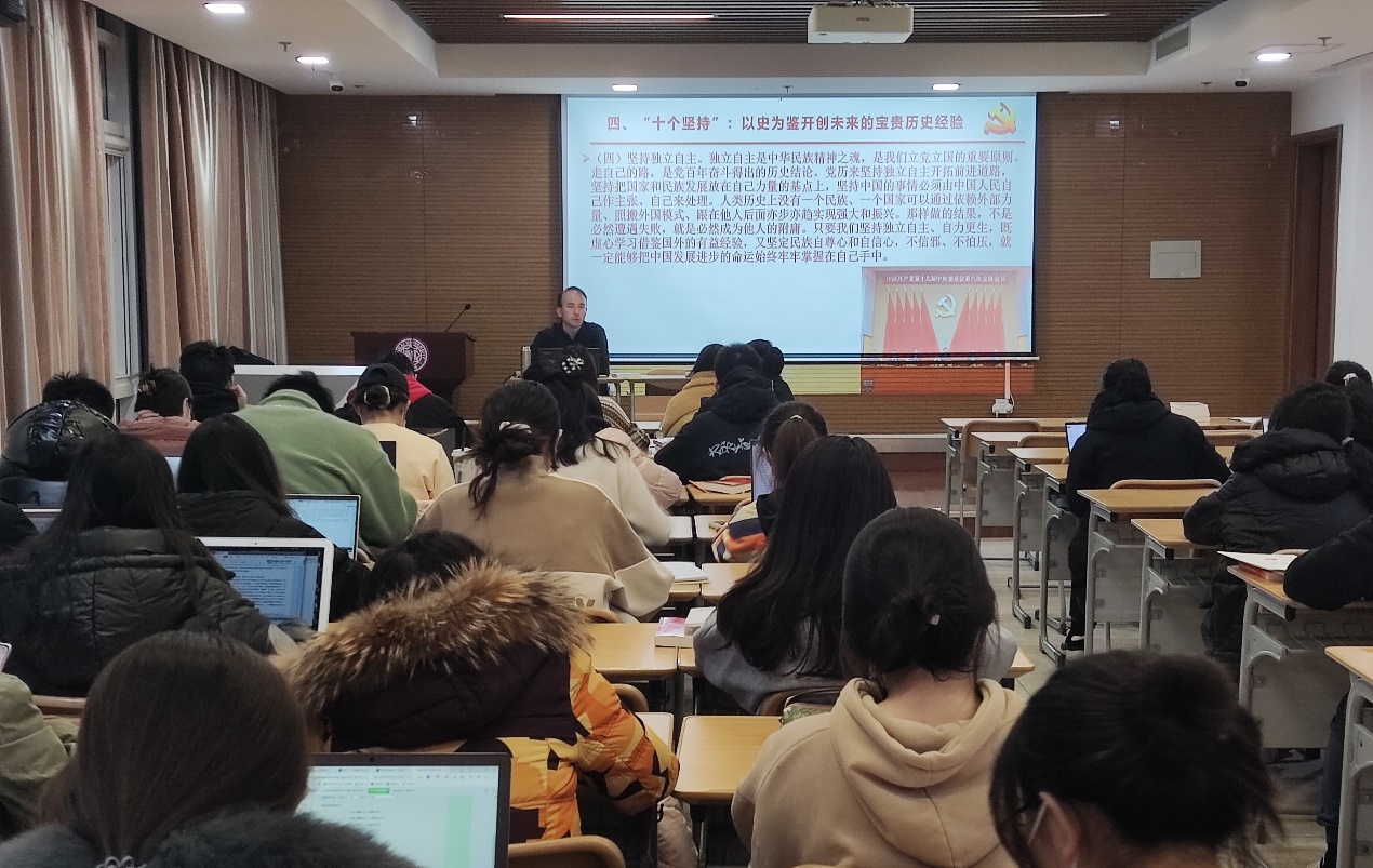 必威betway西汉姆盛林老师领学党的十九届六中全会精神。盛林老师从党的十九届六中全会议题设置的背景、“两个确立”:对于实现中华民族伟大复兴的决定性意义、“十个明确”:习近平新时代中国特色社会主义思想核心内容的进一步概括、“十个坚持”:以史为鉴开创未来的宝贵历史经验四个方面为同学们全面解读了十九届六中全会的精神内涵。盛林老师强调,中国共产党自一九二一年成立以来,始终把为中国人民谋幸福,为中华民族谋复兴作为自己的初心使命,始终坚持共产主义理想和社会主义信念,团结带领全国各族人民为争取民族独立、人民解放和实现国家富强、人民幸福而不懈奋斗,走过了一百年光辉历程。我们已经走上了第二个百年奋斗目标,更应该以史为鉴、开创未来、埋头苦干、勇毅前行。只要我们坚持和平发展道路,既通过维护世界和平发展自己,又通过自身发展维护世界和平,同世界上一切进步力量携手前进,不依附别人,不掠夺别人,永远不称霸,就一定能够不断为人类文明进步贡献智慧和力量,同世界各国人民一道,推动历史车轮向着光明的前途前进!
